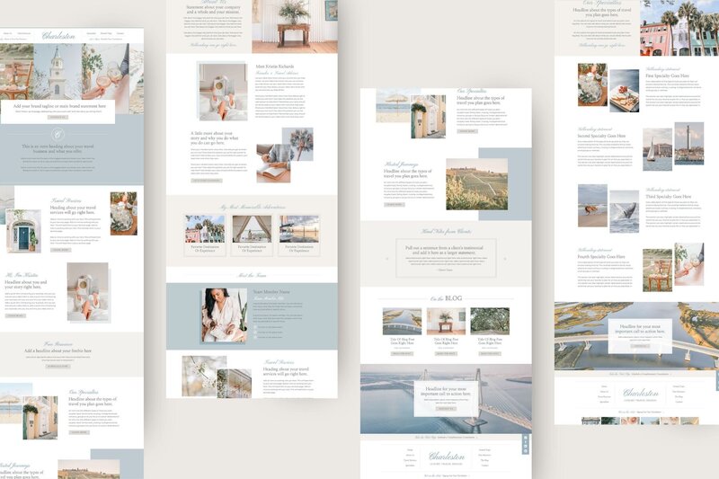 Homepage, About, Services, Specialties, Group Trips, Contact, Freebie & Newsletter Landing Page, Calendar Page, Instagram Links & Blog Section